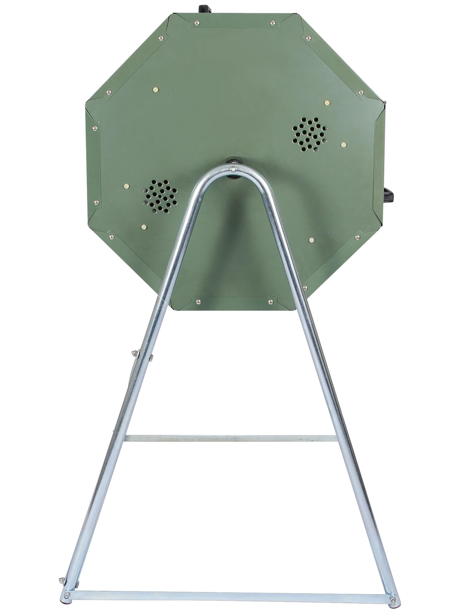 The insulation in the bins of this compost tumbler ensures that the composting material inside reaches higher temperatures than it would in an uninsulated bin — up to 160 degrees F.! This higher temperature results in faster, more efficient and more thorough composting. It also allows you to compost a wider range of materials, including those not recommended for most composters, including citrus fruit with rinds, avocado pits, meat, and fish and poultry with bones — as well as vegetable scraps and yard waste. The composter is easy to turn, and the dual chambers allow continuous composting — add scraps to one side while the other side “cooks.” The Jora Composter is made with high-quality galvanized steel, with tight-fitting latches that exclude rodents and other pests.
