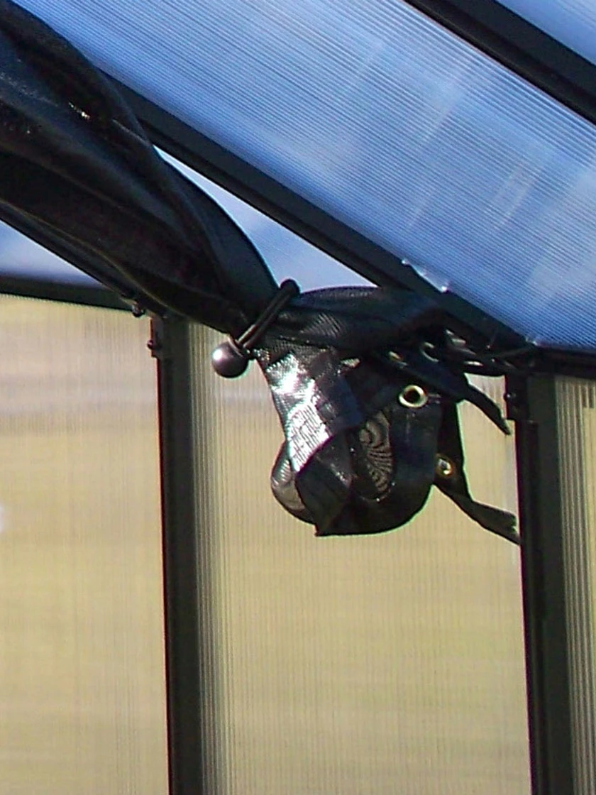 The Monticello 16 foot Shade Cloth Kit is specifically designed for the Monticello line of 16FT greenhouses. The design is simple, unique and thoughtful. Most shade cloths go on the outside of the greenhouse, interfering with roof vent and side window functioning. They are bulky and not easy to set up or take down. The Monticello Shade Cloth kit comes ready to use, no grommet installation needed. The commercial grade shade cloth (rated at 63%) works off a specially designed commercial grade wire system guaranteed to last for 7 years. The shade cloth comes in 4 foot sections so it will work with our Automatic Watering system and since the shade cloth is on the inside, it will not interfere with the Monticello Automatic Vent openers allowing fresh air to flow in and out un impeded. To operate the Shade Cloth System is as easy as pulling the cloth back to open or pulling tight to the other side to close. Just like our greenhouses, the Monticello Shade Cloth is proudly made in the USA from start to finish.